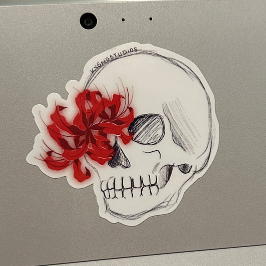 die cut spider-lily skull sticker